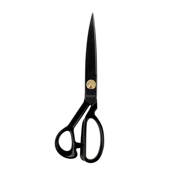 Een schaar is een belangrijk stuk gereedschap waarbij kwaliteit echt het verschil maakt. Deze kleermakersschaar van Bohin is ontworpen voor intensief gebruik. De hoogwaardige schaar is gemaakt van hoog koolstofstaal en heeft snijbladen van maar liefst 5mm dik waarmee je gemakkelijk zware stoffen knipt. De snijbladen lopen door tot in de handvaten, waardoor ze extra sterk zijn. De handvaten hebben een rubberen coating die zorgt voor een comfortabele grip tijdens het knippen. Ook knippen op tafel is een eenvoudige klus met deze professionele kleermakersschaar. Deze schaar kan alle soorten stof aan, van lichte tot zware stoffen. De zwarte kleur en het subtiele logo geven deze kleermakersschaar een chique uitstraling.